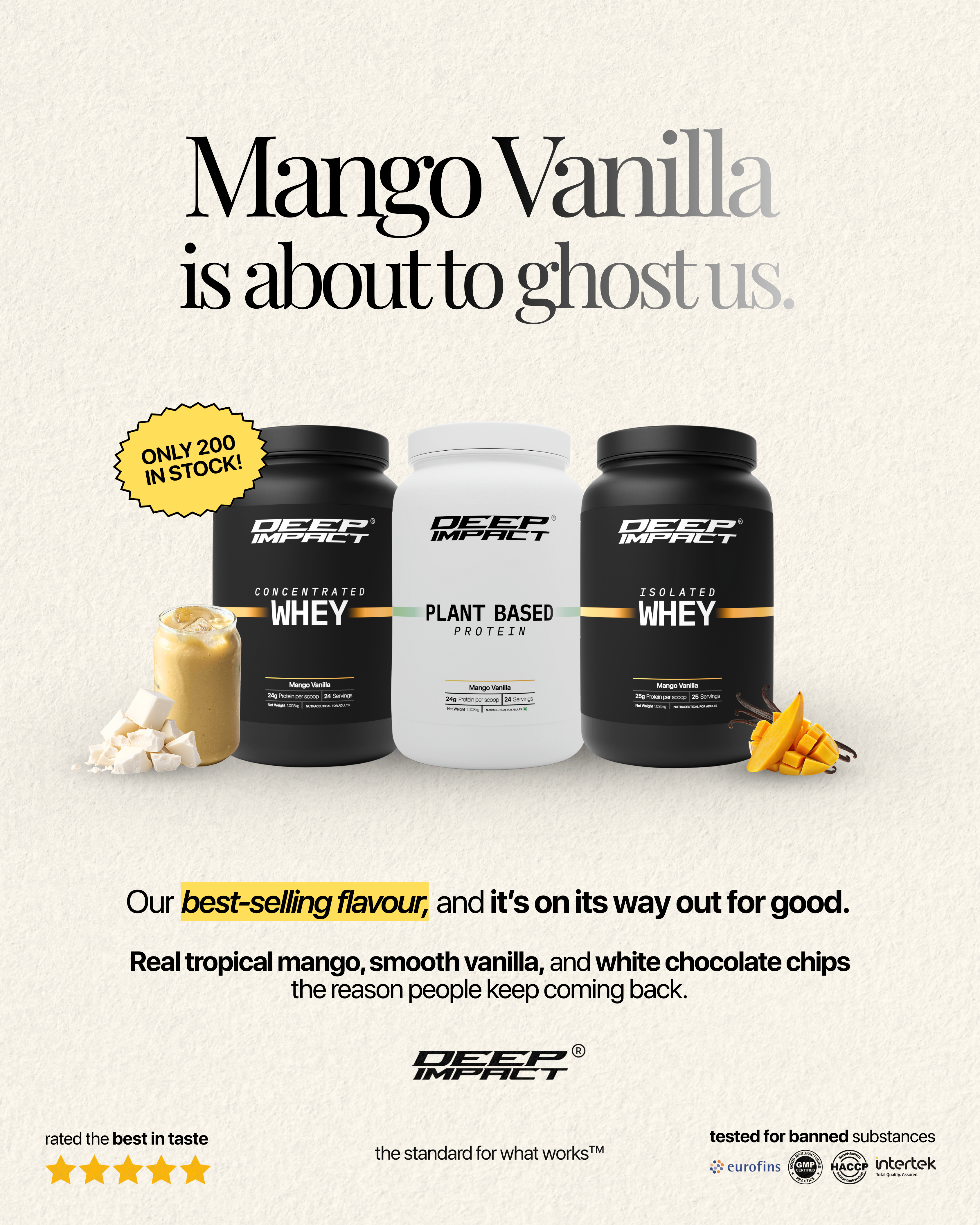 We use Alphonso mango from India because nothing else comes close to its natural sweetness and depth of flavour. It gives the protein a real, dessert-like taste without relying on artificial flavouring.