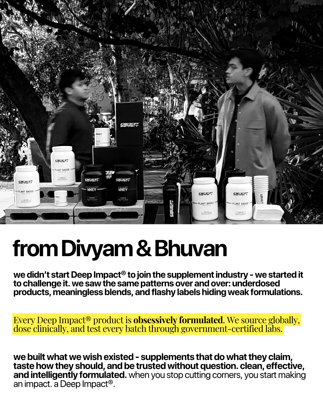 we don’t ask you to trust us — we prove it. every batch of Deep Impact® product is tested by government-certified third-party labs. heavy metals and amino acid profiles to banned substances and pesticides — our results are public.