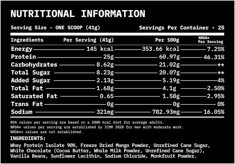 Sourced from high-quality whey from the USA, filtered for purity, and flavoured only with 100% natural ingredients — no artificial additives, no fillers.