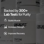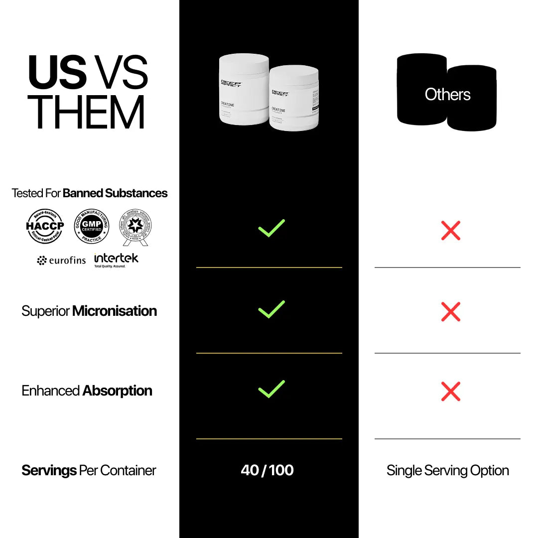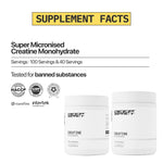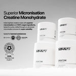 Pure, unflavoured creatine monohydrate made with superior micronisation and 100% vegan ingredients — tested for purity, light as air, and built for high mixability.